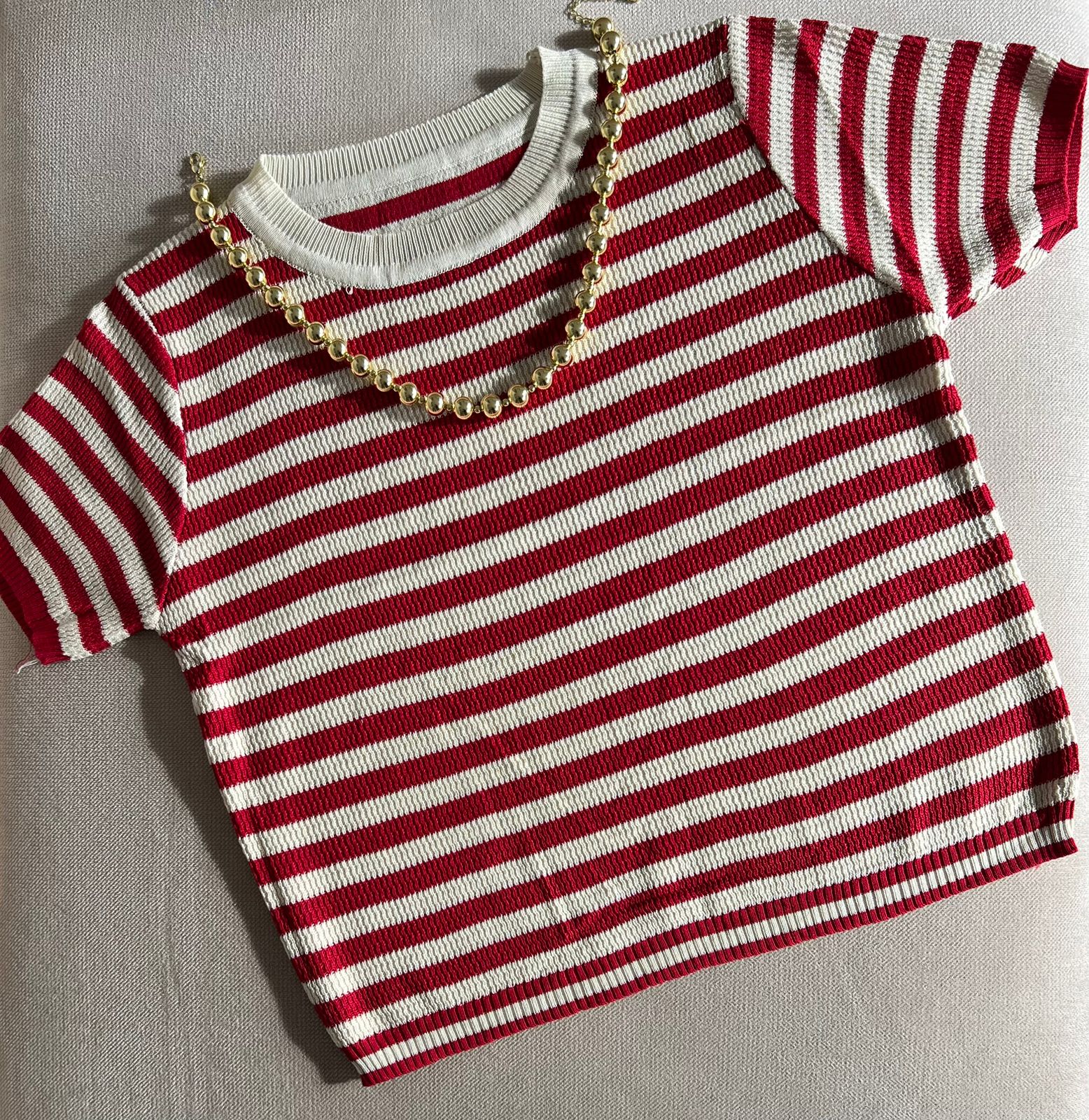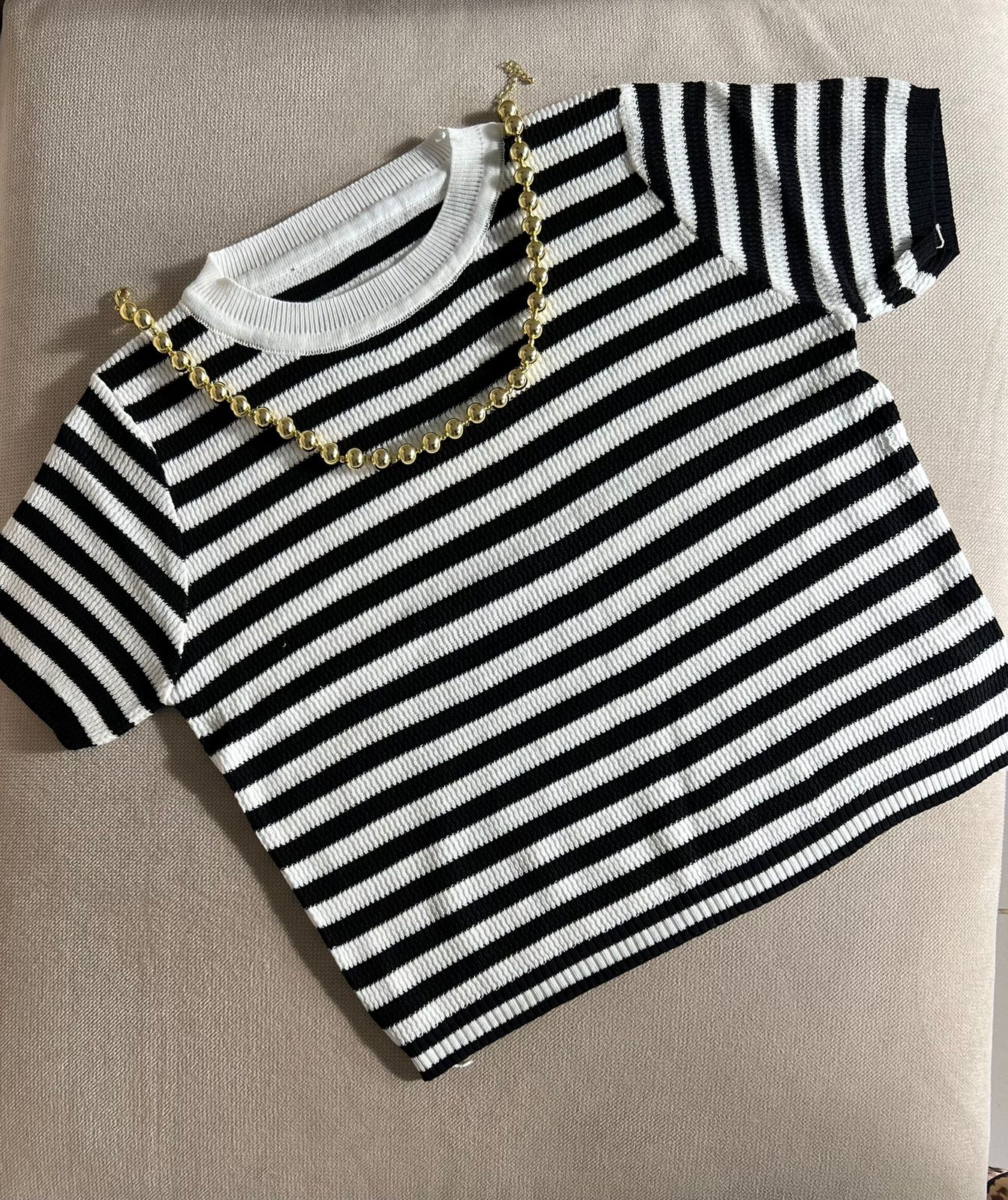 Las rayas, que pueden variar en grosor y color, añaden un elemento visual atractivo, permitiendo que esta prenda se combine fácilmente con jeans, pantalones cortos o faldas. Ideal para un look casual o para un día de salida, la básica Dubai es perfecta para cualquier ocasión. Su tejido ligero y flexible asegura que se mantenga en su lugar, brindando libertad de movimiento y un estilo relajado.