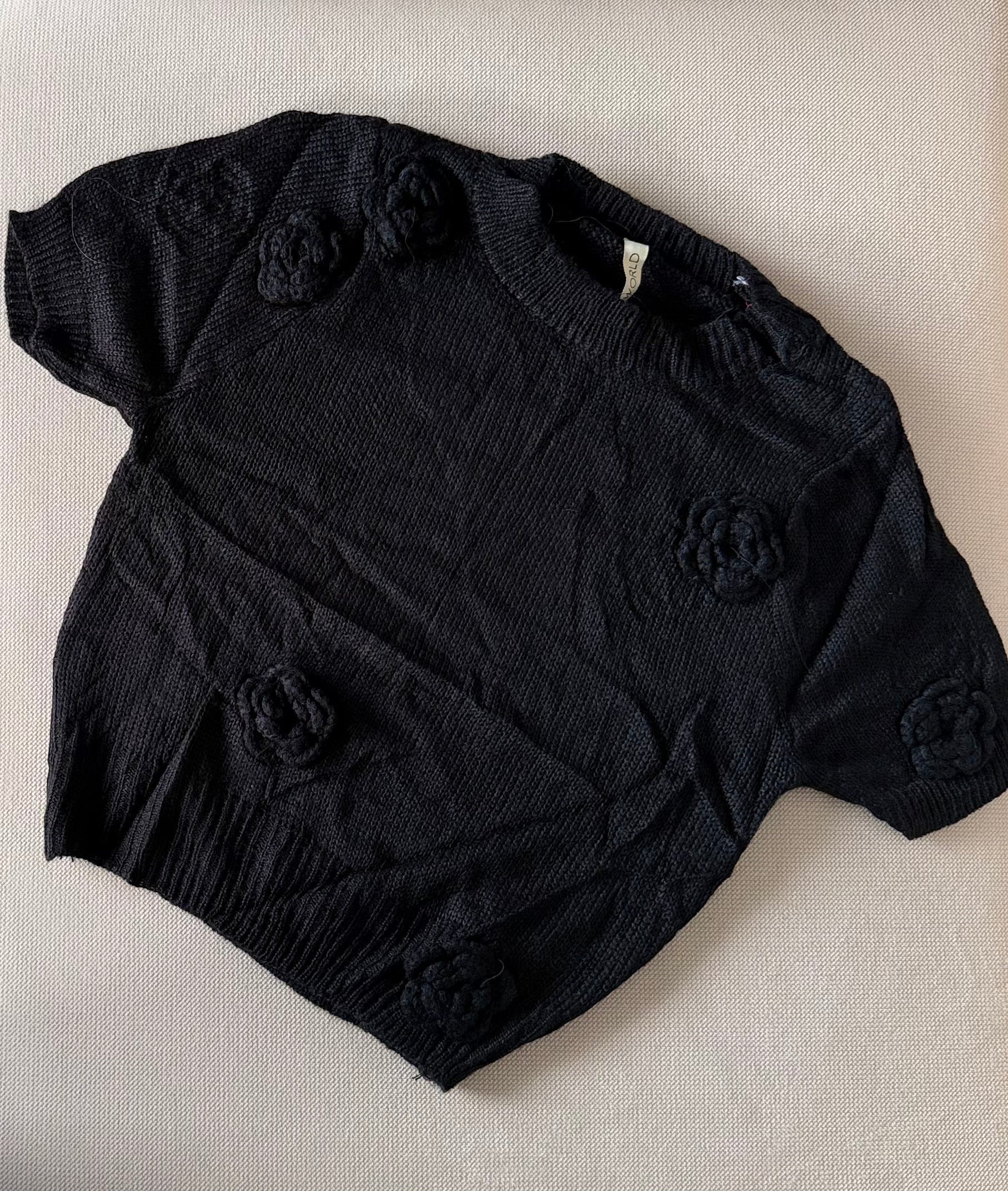¡Añade un toque de estilo y feminidad a tu armario con esta camiseta básica con rosas tejidas!