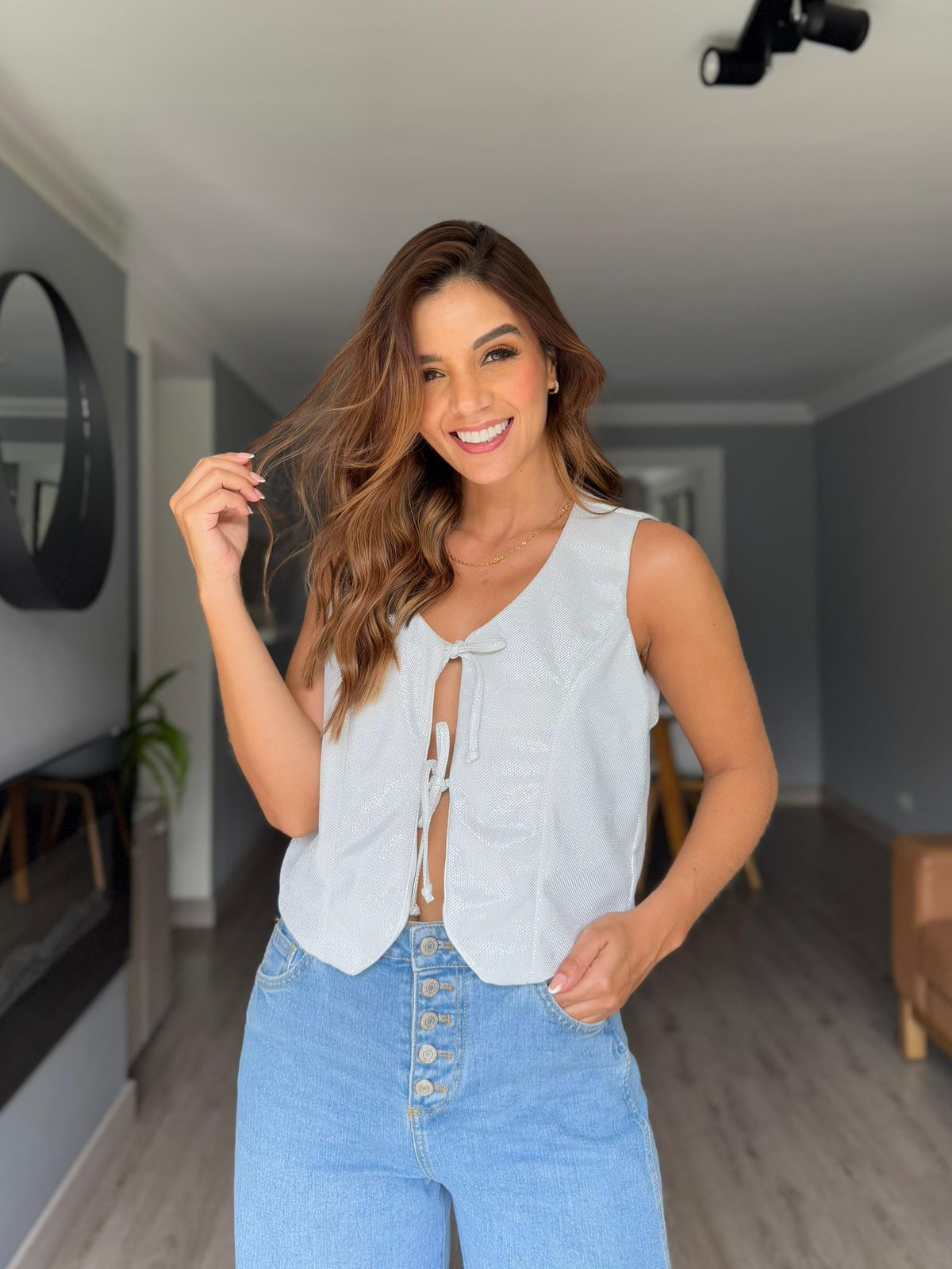 Confeccionado en una tela de alta calidad, el chaleco Amarrar ofrece una suavidad excepcional y un ajuste cómodo. Su diseño con amarre en la parte media no solo resalta tu figura, sino que también te permite ajustar el fit a tu medida, brindando un toque de sensualidad y estilo.