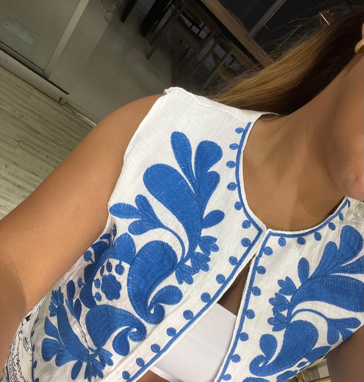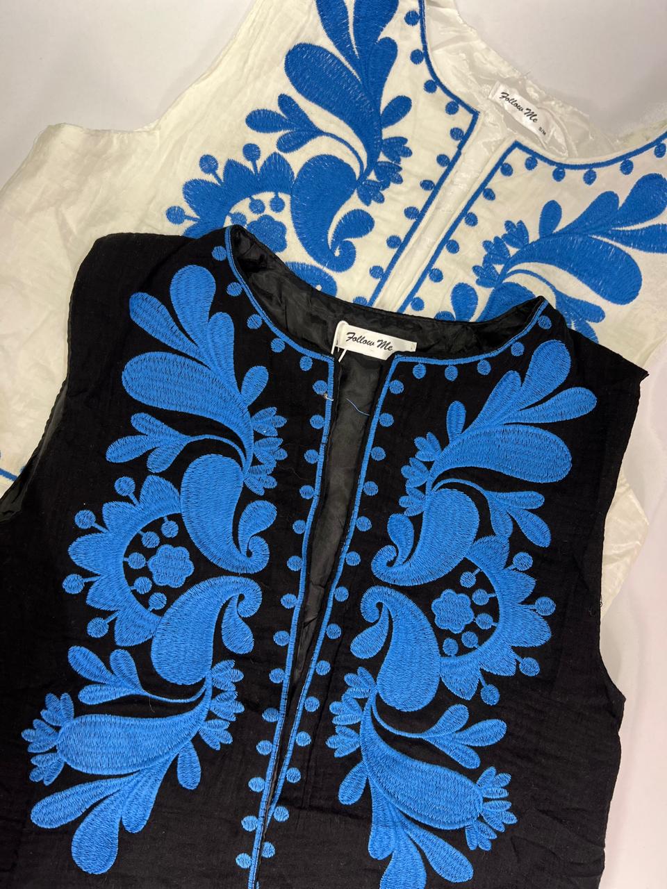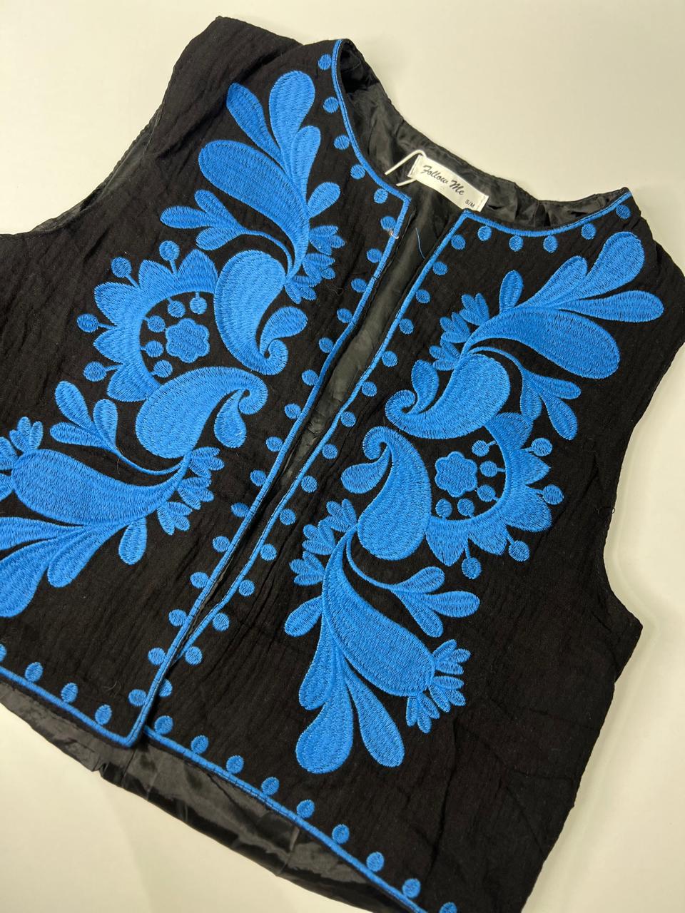 Un chaleco de algodón con bordados es una prenda de vestir elegante y versátil que combina la comodidad del algodón con el detalle artesanal de los bordados. Este tipo de chaleco suele estar confeccionado en algodón de alta calidad, lo que lo hace ligero y transpirable, ideal para usar en diferentes ocasiones.