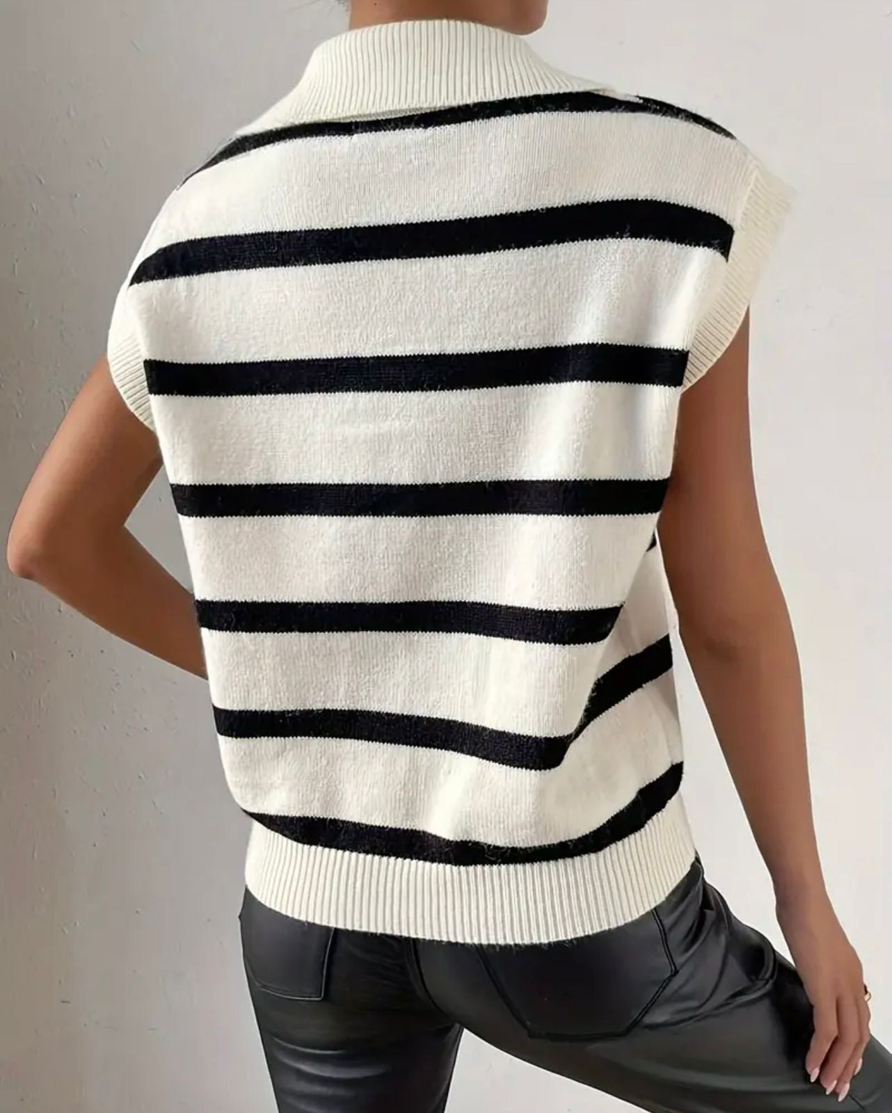 Este suéter de cuello a rayas es perfecto para la primavera y el verano. Con un diseño elegante de bloques de color y mangas cortas, es ideal para cualquier ocasión. Manténgase a la moda y cómodo con esta prenda de alta calidad.