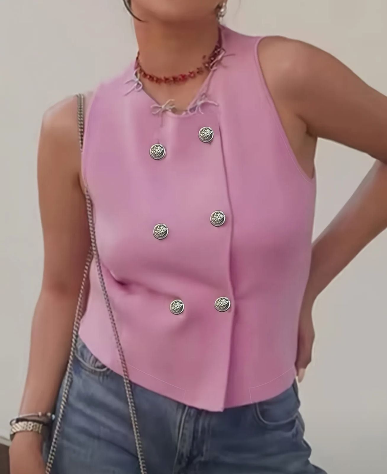 Disfruta de la comodidad y estilo con el Chaleco de Verano para Mujer REFERENCIA 11. Con su diseño sin mangas y cuello redondo con botones, es el complemento perfecto para looks casuales o formales. Además, su durabilidad y facilidad de lavado lo hacen ideal para cualquier ocasión. ¡Hazlo parte de tu guardarropa ahora!