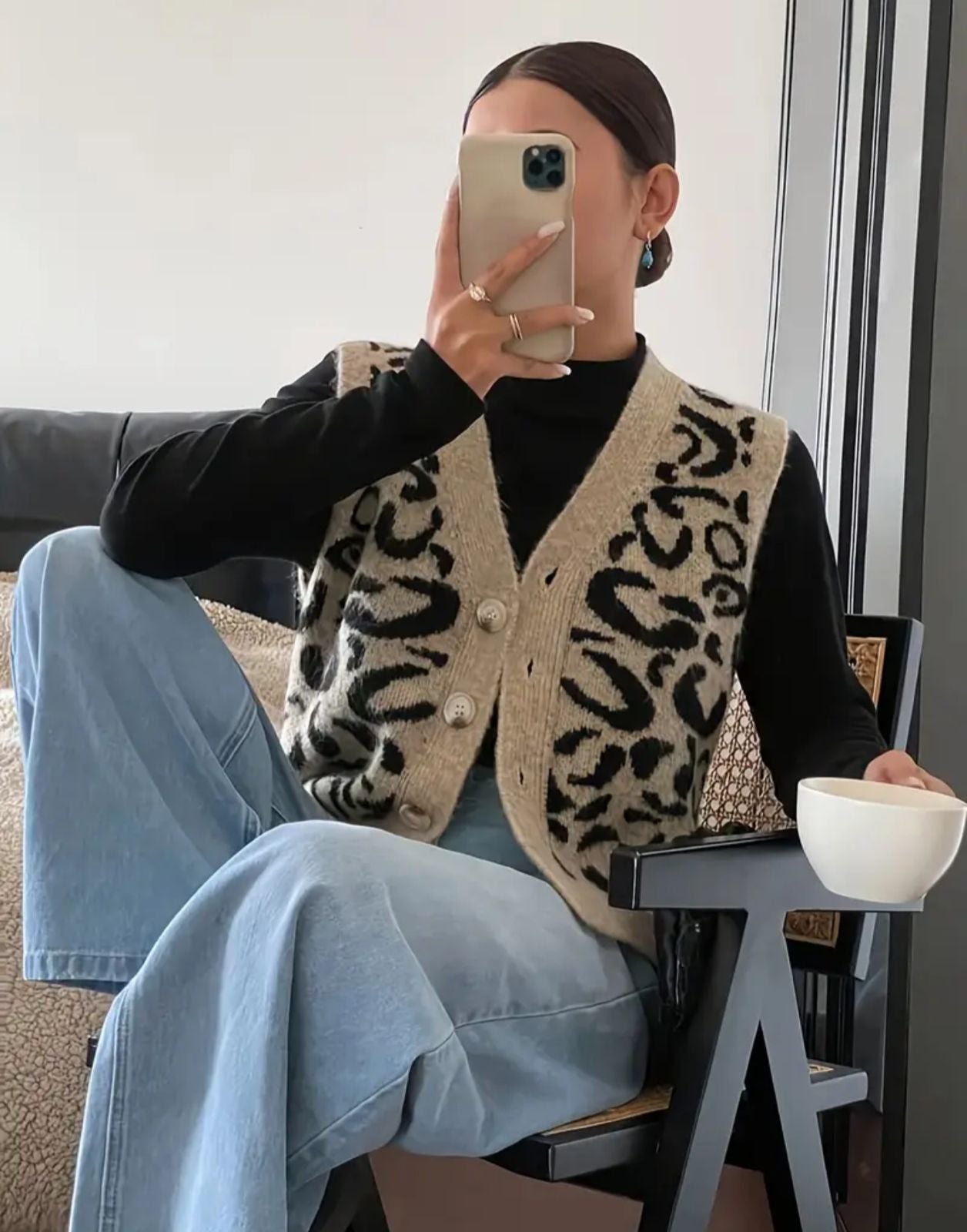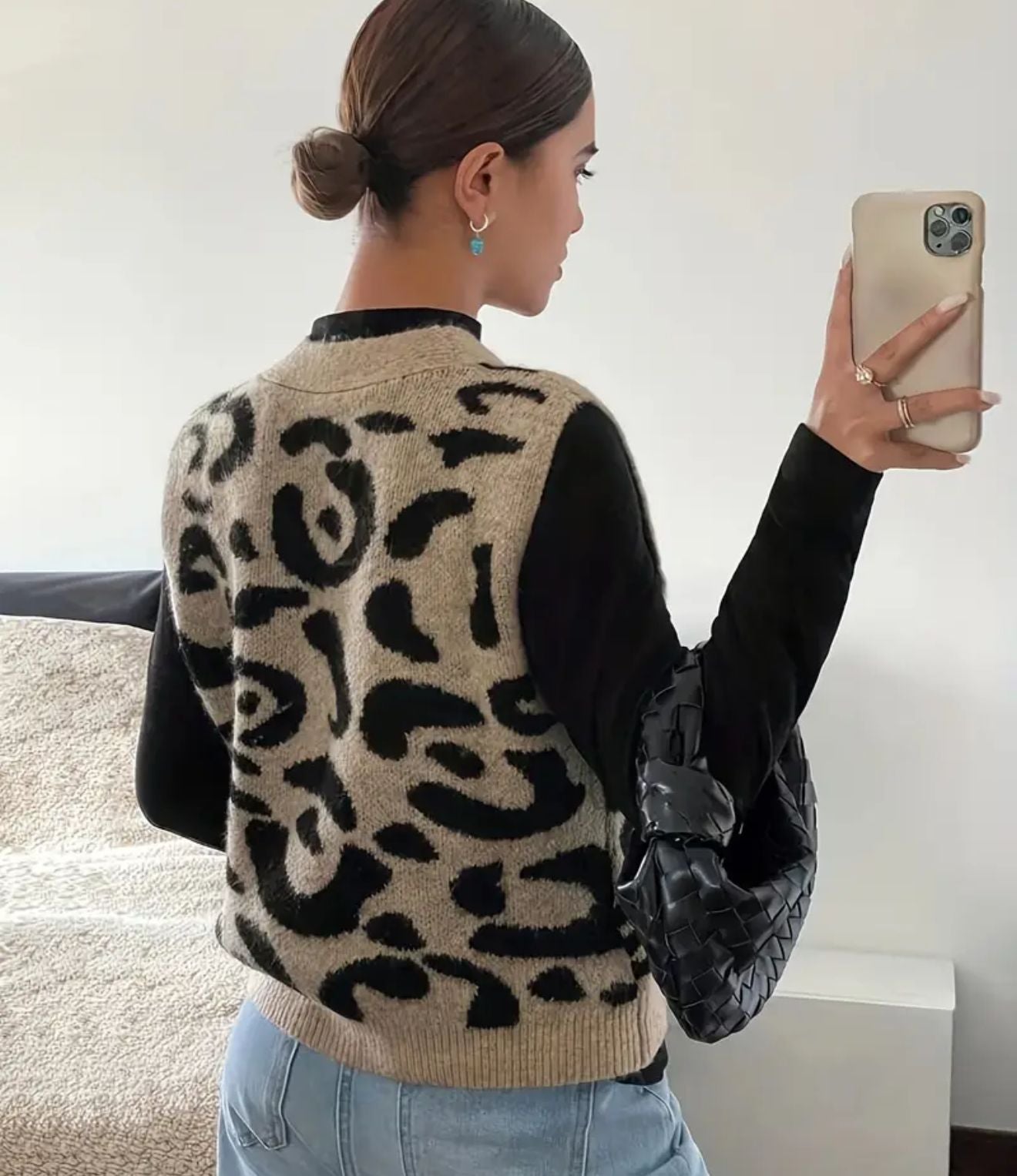 Con REFERENCIA 9, luce un estilo moderno y atractivo con su haleco Casual de Cuello en V para Mujer. Con estampado de leopardo en verde oscuro con manchas marrón claro, esta pieza versátil para todas las temporadas combina con jeans y vestidos. Su diseño de cuello a contraste agrega un toque de elegancia a cualquier atuendo.