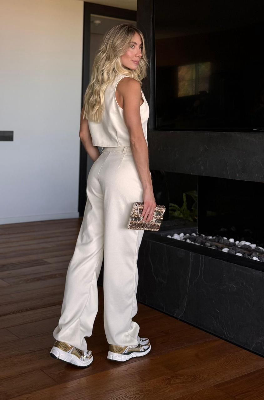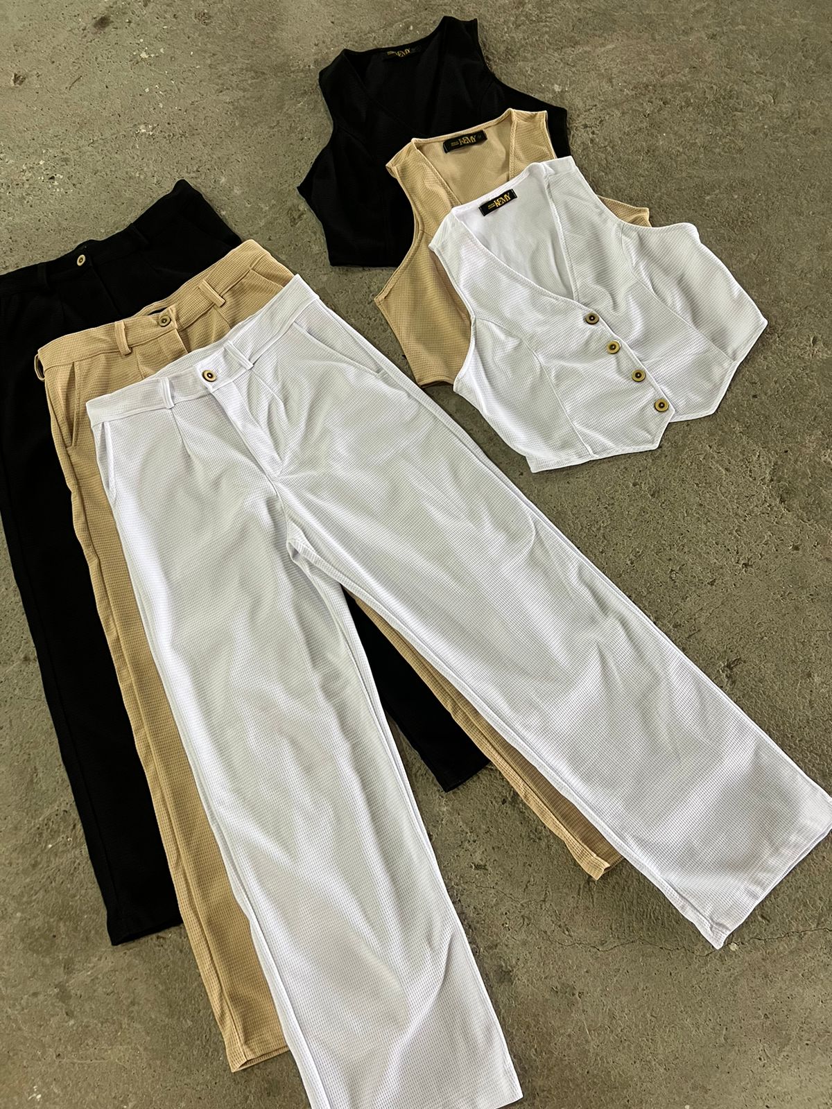 Este set incluye una blusa y un pantalón que se complementan a la perfección. La blusa presenta un corte moderno y detalles delicados que realzan la figura, mientras que la falda, con su silueta elegante, añade un toque de sofisticación. Juntas, estas piezas crean un look armonioso que es a la vez chic y atemporal, permitiéndote lucir fabulosa en cualquier evento.